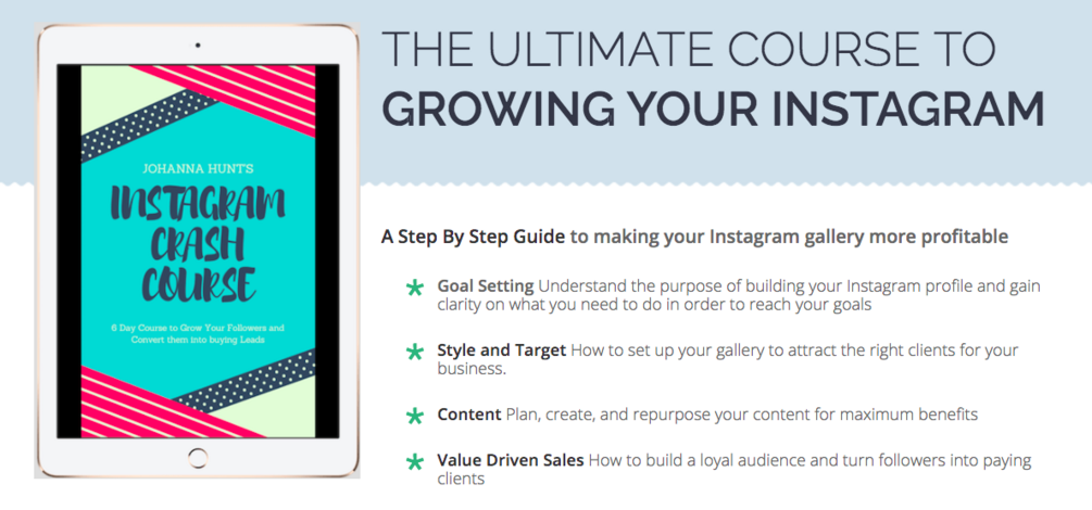 You'll receive 7 emails that include training video and written tutorials and workbooks, as well as my most recommended tools and resources for growing and scaling your business on Instagram! Once you complete your purchase you'll be redirected to a login page where you will enter your email address. The course will be delivered to you over the course of 7 days and each email will include the corresponding trainings, workbooks, and recommended tools.